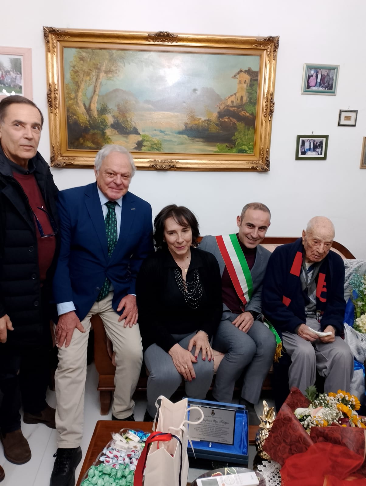 Gli auguri della cantautrice Madame sono arrivati inaspettati anche per l’ultima delle figlie del prof. Filippo, Deborah, insegnante di storia dell’arte e appassionata videomaker, che di Madame è fan accesissima. Ma a fargli gli auguri per il centesimo compleanno anche l’Amministrazione comunale di Cosenza che ha partecipato, attraverso il consigliere Francesco Turco, espressamente delegato dal Sindaco Franz Caruso. Con Francesco Turco, anche la consigliera comunale Caterina Savastano, mentre il comune di San Vincenzo La Costa, del quale il professore Filippo è originario, esattamente della frazione Gesuiti, era rappresentato dal primo cittadino Gregorio Iannotta. Esemplare l’attività di insegnante che ha svolto a lungo nella scuola elementare del sesto circolo di via degli Stadi: Ugo Filippo è stato altrettanto lungamente impegnato in politica, nelle file della Democrazia cristiana. La sua successiva devozione religiosa si è poi espressa anche attraverso l’attivismo come frate laico nella parrocchia di San Domenico a Cosenza. Stimato da tutti, la festa organizzata in suo onore è stata la plastica dimostrazione dell’affetto che si è guadagnato sul campo con un modus vivendi incentrato sulla generosità e l’attenzione dedicata alla famiglia e ai suoi undici figli e ai tanti nipoti. I suoi racconti di vita, di ragazzo che durante la guerra ha patito la fame, sono sempre stati lo specchio dei sacrifici che ha affrontato in tempi molto difficili e che non ha mancato di ricordare ai familiari che hanno recepito la lezione fino a farne tesoro. E poi la sua passione, abbondantemente confessata, per i colori rossoblù della squadra del Cosenza calcio della quale si considera uno dei tifosi storici. Una passione che venne premiata a Gesuiti quattro anni fa direttamente dai calciatori del Cosenza che in quella occasione gli regalarono una sciarpa con i colori sociali. La stessa sciarpa che ha voluto indossare per festeggiare il centesimo compleanno.
