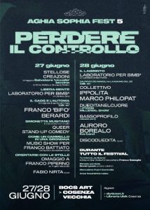 Il quinto Aghia Sophia Fest si svolgerà il 27 e 28 giugno ai Bocs Art di Cosenza, con il tema “Perdere il controllo”. Gli organizzatori descrivono il festival come sincero, accogliente e rappresentativo della città.
