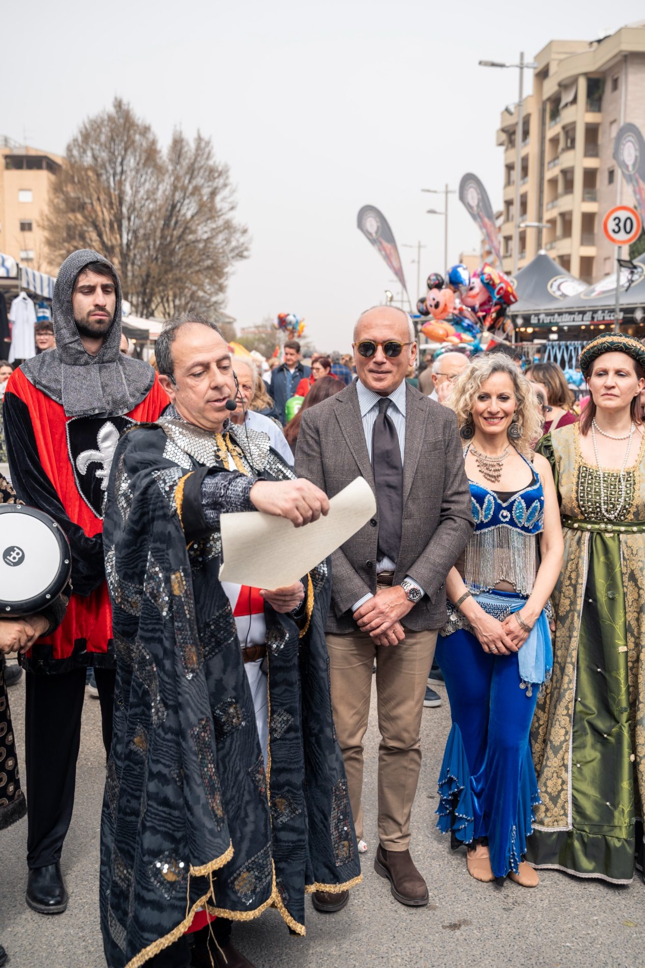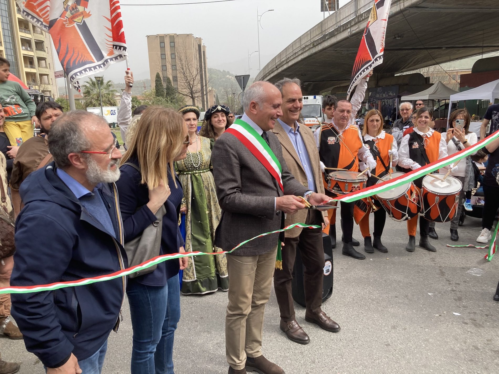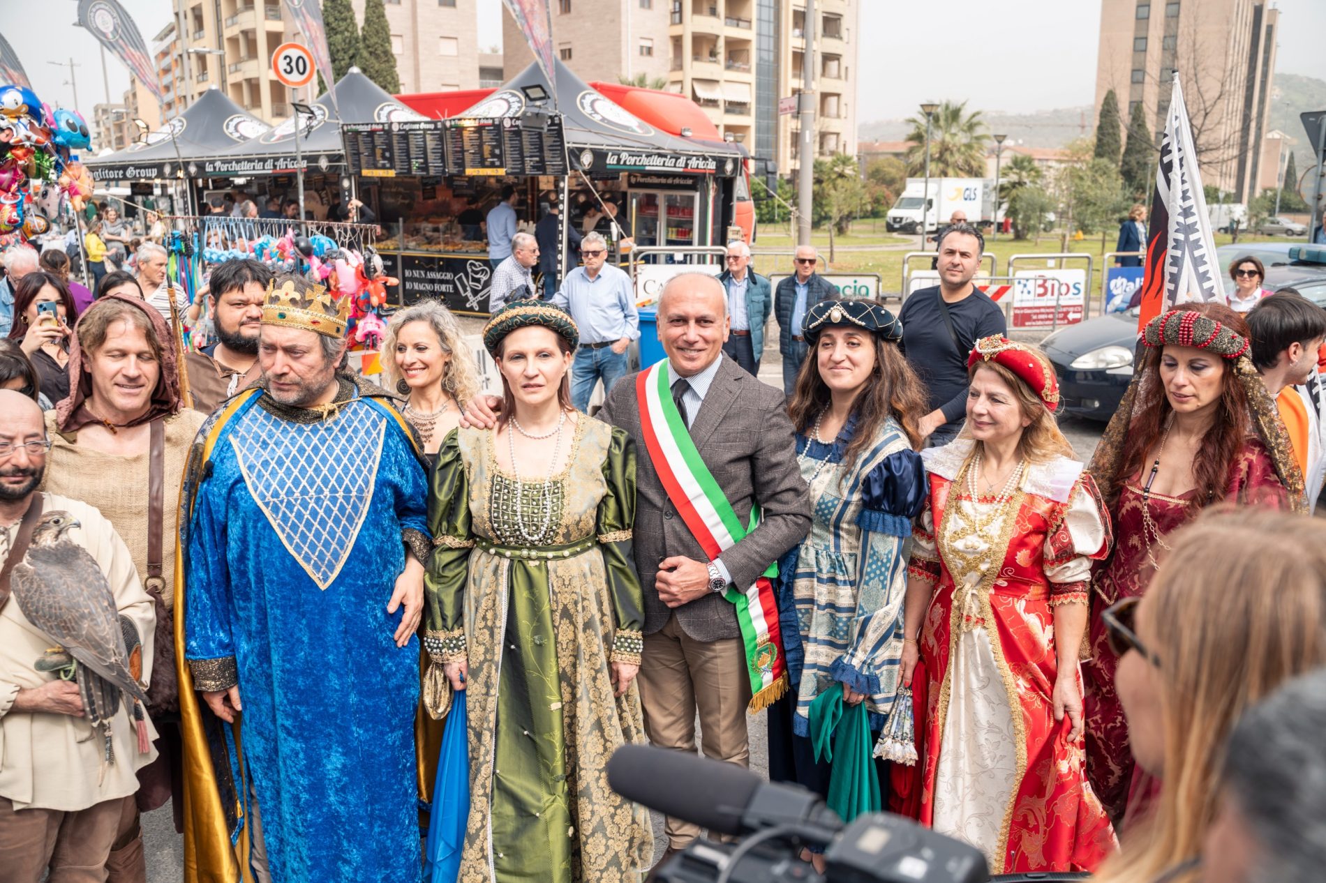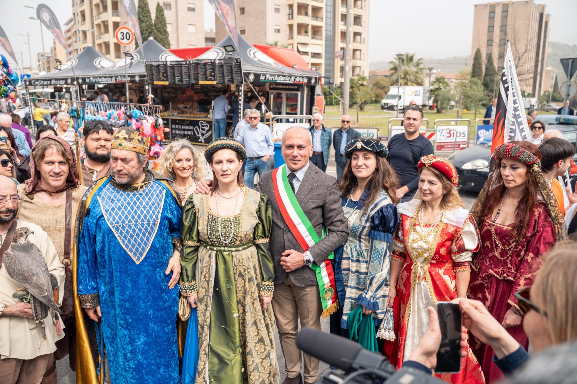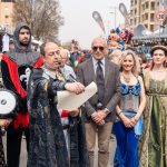 La cerimonia si è svolta nel punto esatto dove comincia l’esposizione fieristica, lungo il viale Giacomo Mancini, in via Padre Giglio, all’altezza della sopraelevata, che da diverse edizioni è diventato il punto di partenza del percorso fieristico che si conclude al Parco “Nicholas Green”. Con il primo cittadino anche una rappresentanza della Giunta di Palazzo dei Bruzi con la Vicesindaca, Maria Locanto, l’Assessore alle attività economiche e produttive Massimiliano Battaglia e l’Assessore ai lavori pubblici Damiano Covelli. Diversi i consiglieri comunali, tra i quali anche la delegata alla Cultura, Antonietta Cozza, e Francesco Turco, delegato del Sindaco ai rapporti con le confessioni religiose. A legare la fiera di quest’anno alle sue radici, a quel 1234 della sua istituzione per mano di Federico II di Svevia che parificò l’allora Fiera della Maddalena di Cosenza alle altre più importanti fiere che si svolgevano nel Meridione, in città come Sulmona, Capua, Bari e Taranto, è stata la bella e interessante teatralizzazione dal titolo “La Fiera dello Stupor Mundi-Alla corte di Federico II di Svevia”, che richiama le origini della Fiera, risalenti a quasi ottocento anni fa e di cui sono stati ancora una volta protagonisti gli attori e i figuranti dell’Associazione “La Città del Sole- Tommaso Campanella”, che, diretti da William Gatto, hanno riproposto la lettura della bolla imperiale con la quale Federico II di Svevia istituì ufficialmente la Fiera. Un momento nel quale, sotto gli occhi del Sindaco Franz Caruso, alla presenza dello stesso Imperatore in costume d’epoca, della sua corte, con damigelle, banditori, musici e mangiafuoco, la Fiera ha potuto vivere il suo inizio, precedendo la consueta passeggiata del primo cittadino tra gli stands sistemati lungo il percorso fieristico. Visibilmente soddisfatto il Sindaco Franz Caruso che ha sottolineato che “la Fiera è un evento che coinvolge non solo la città, ma tutta la provincia e la regione. Quest’anno – ha aggiunto il primo cittadino -abbiamo espositori provenienti da tutte le parti del Mezzogiorno e anche oltre, e la presenza già numerosa del pubblico che ha invaso la Fiera ci lascia ben sperare, perché abbiamo la convinzione che i numeri degli anni passati saranno anche superati”.