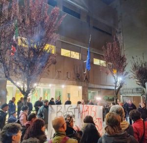 Poco dopo, i manifestanti si sono spostati dalla sede di Iacchitè davanti alla Questura per ribadire il concetto di “basta abusi di potere” e affermare che nessuno può zittire un giornale o un movimento che ogni giorno denuncia con forza e determinazione le nefandezze delle istituzioni e della criminalità organizzata.