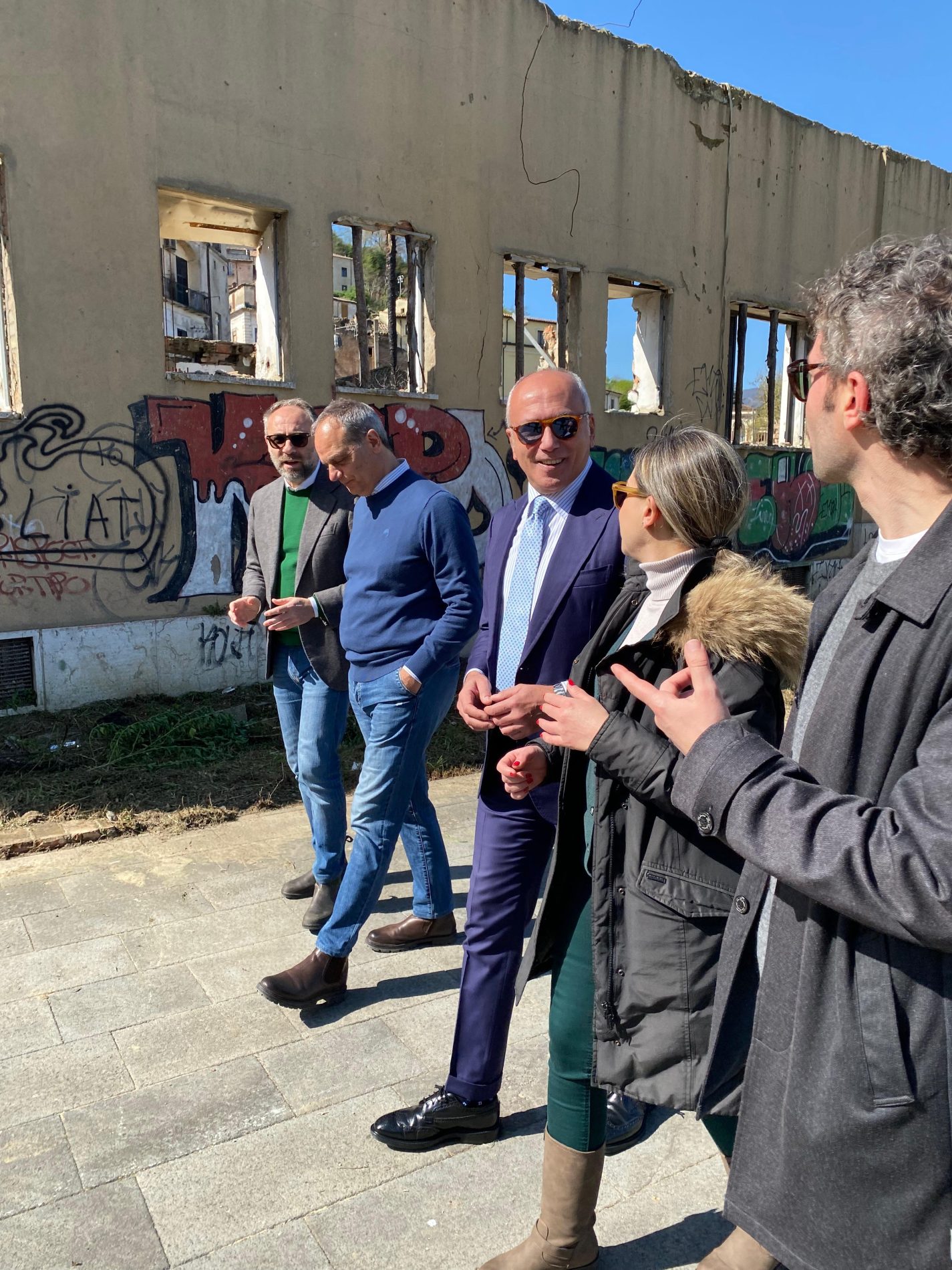 Sono ufficialmente partiti questa mattina, giovedì 3 aprile, i lavori di recupero dell’ex Hotel Jolly e di tutta l’area circostante. Al cantiere si è recato in visita il sindaco Franz Caruso, accompagnato dall’assessore ai Lavori pubblici Damiano Covelli, dal consigliere delegato Francesco Alimena, dal dirigente del settore Infrastrutture, ingegnere Salvatore Modesto e dal Rup, ingegnere Maria Colucci.