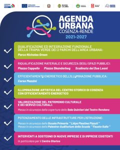 “La Strategia Urbana Cosenza-Rende 21-27 l’abbiamo gestita direttamente- ha concluso Franz Caruso – scegliendo azioni che ci consentiranno di recuperare l’area ovest della città, una parte della quale è stata di recente sottoposta a vincolo “Cosenza Nuova” dalla soprintendenza archeologia belle arti e paesaggio e finora non ancora oggetto di riqualificazione urbana.