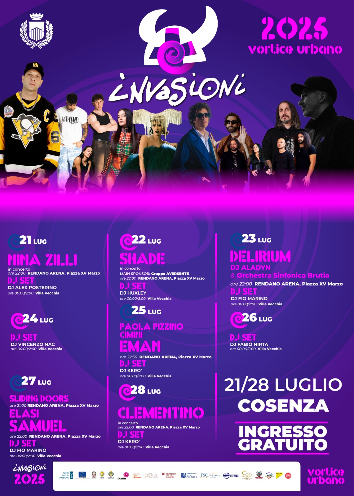 Un vortice creativo attraverserà Cosenza dal 21 al 28 luglio, con l’edizione 2025 di “Invasioni”, la rassegna che fonde musica, teatro, arti visive e sperimentazione urbana. La manifestazione, organizzata dal Comune di Cosenza e candidata all’avviso pubblico del Dipartimento Turismo della Regione Calabria, prenderà vita in luoghi simbolici e periferici della città, dal centro storico alla Villa Vecchia, passando per palazzi storici, arene e piazze meno battute.