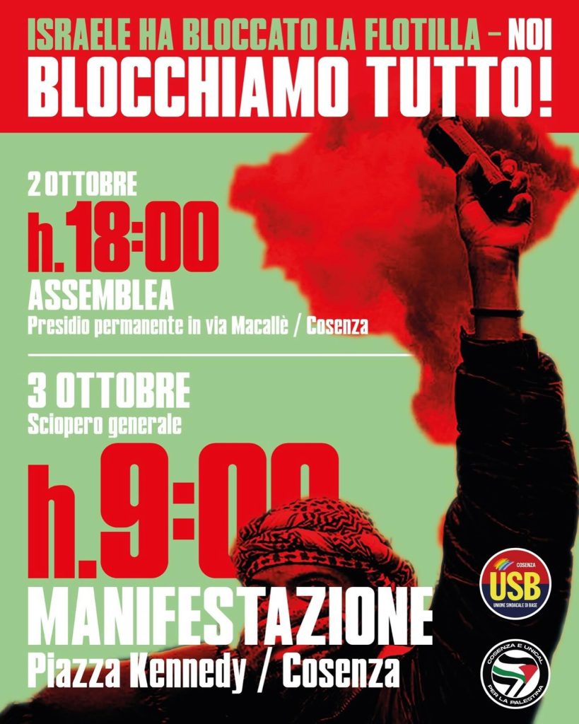 Cosenza e Calabria, mobilitazioni per la Palestina dopo l’assedio alla Flotilla