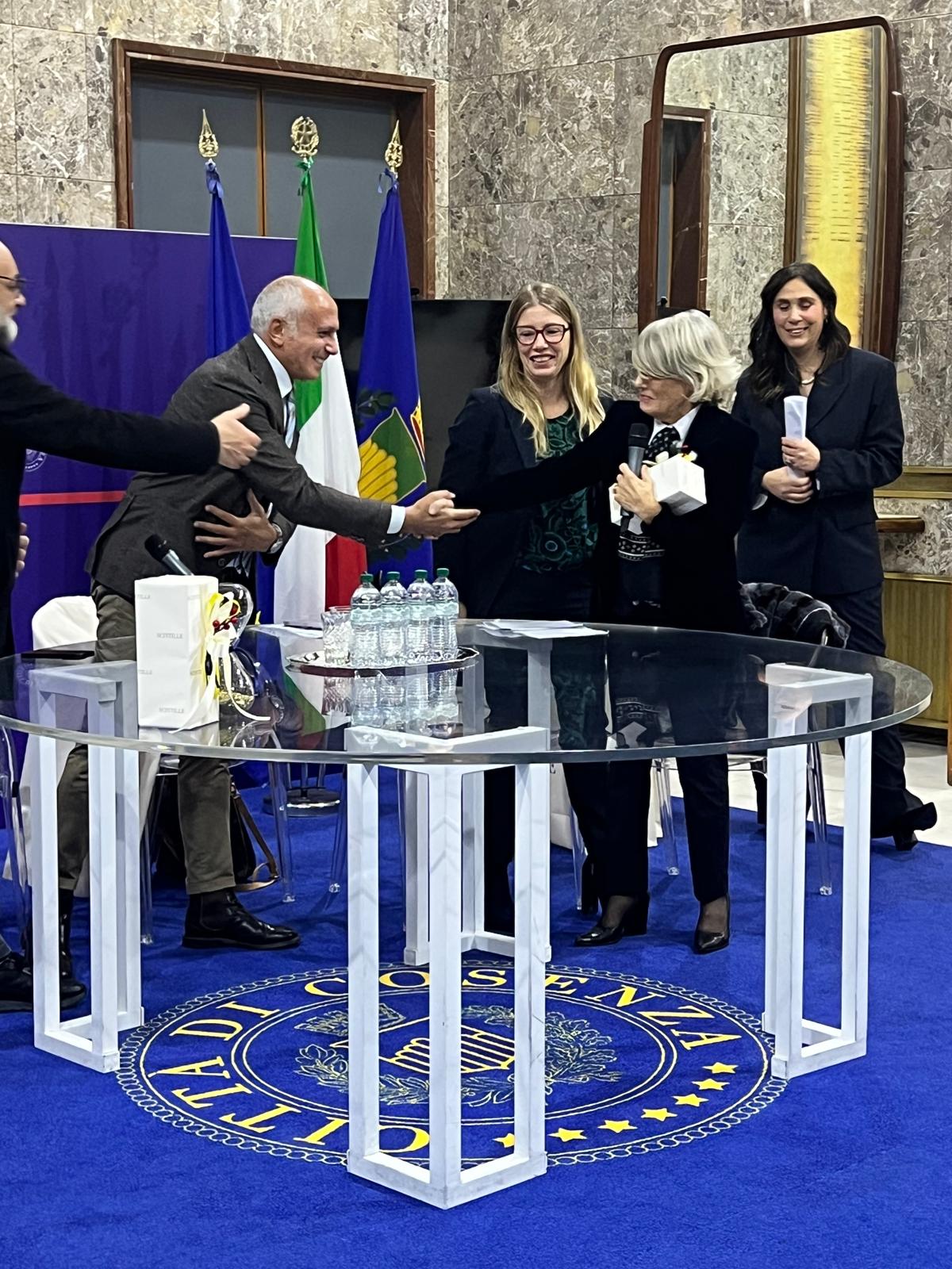 Queste le donne che hanno ricevuto il riconoscimento del CIF e dell’Amministrazione comunale (una clessidra che simboleggia la pazienza delle aspettative e l’urgenza del futuro e che trasforma il tempo in opportunità e storia): Eva Catizone, prima e finora unica donna eletta sindaco della città di Cosenza; Ornella Nucci, prima donna Presidente dell’Ordine degli Avvocati di Cosenza; Angela Riccetti, dirigente dell’Azienda Sanitaria Provinciale e Ambasciatrice Rosa della Komen; Loredana De Franco, attuale Presidente del Tribunale di Cosenza; Agata Mollica, attuale Presidente dell’Ordine dei Medici della provincia di Cosenza, Giusy Ferrucci, Presidente di Sezione Penale dell’ufficio GIP‑GUP del Tribunale di Cosenza; Franca Melfi, medico e pioniera mondiale della chirurgia robotica; Virginia Milano, Segretario Generale del Comune di Cosenza; Jole Santelli, premio alla memoria come prima Presidente donna della Regione Calabria (il riconoscimento è stato ritirato dalle sorelle Paola e Roberta Santelli); Rita Pisano, altro premio alla memoria che ricorda una delle prime amministratrici della nostra regione, dirigente di partito e consigliere comunale di Cosenza, protagonista delle lotte per l’emancipazione della donna subito dopo il dopoguerra e Sindaco di Pedace.