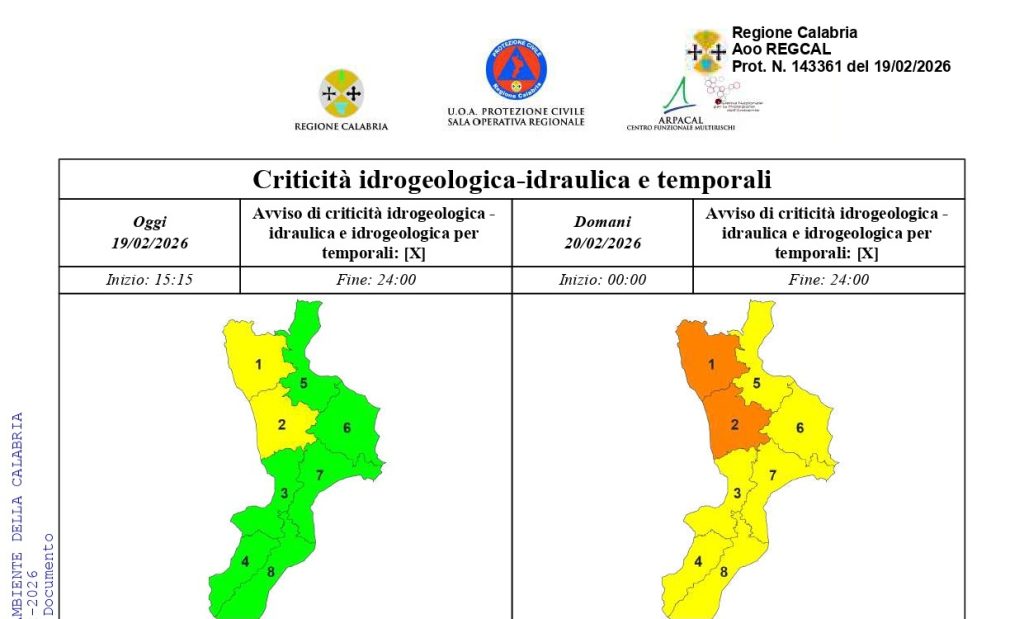 Il nuovo bollettino della Protezione Civile segnala un peggioramento nelle prossime 24 ore. Massima attenzione per il Tirreno cosentino e...