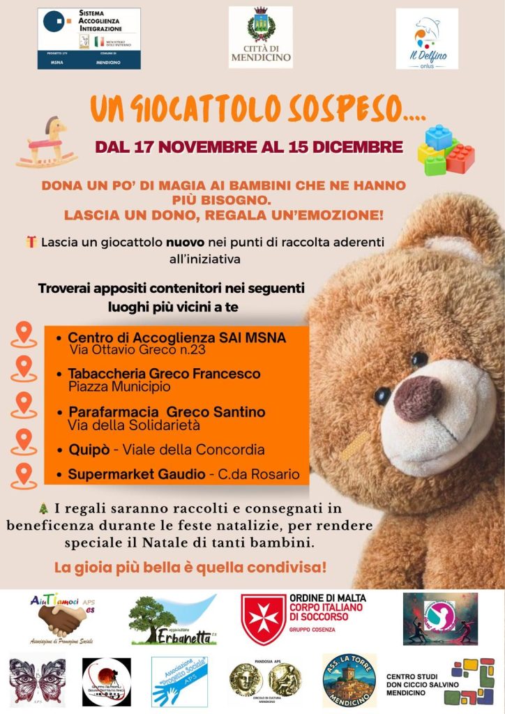 Mendicino lancia l’iniziativa “Un giocattolo sospeso”