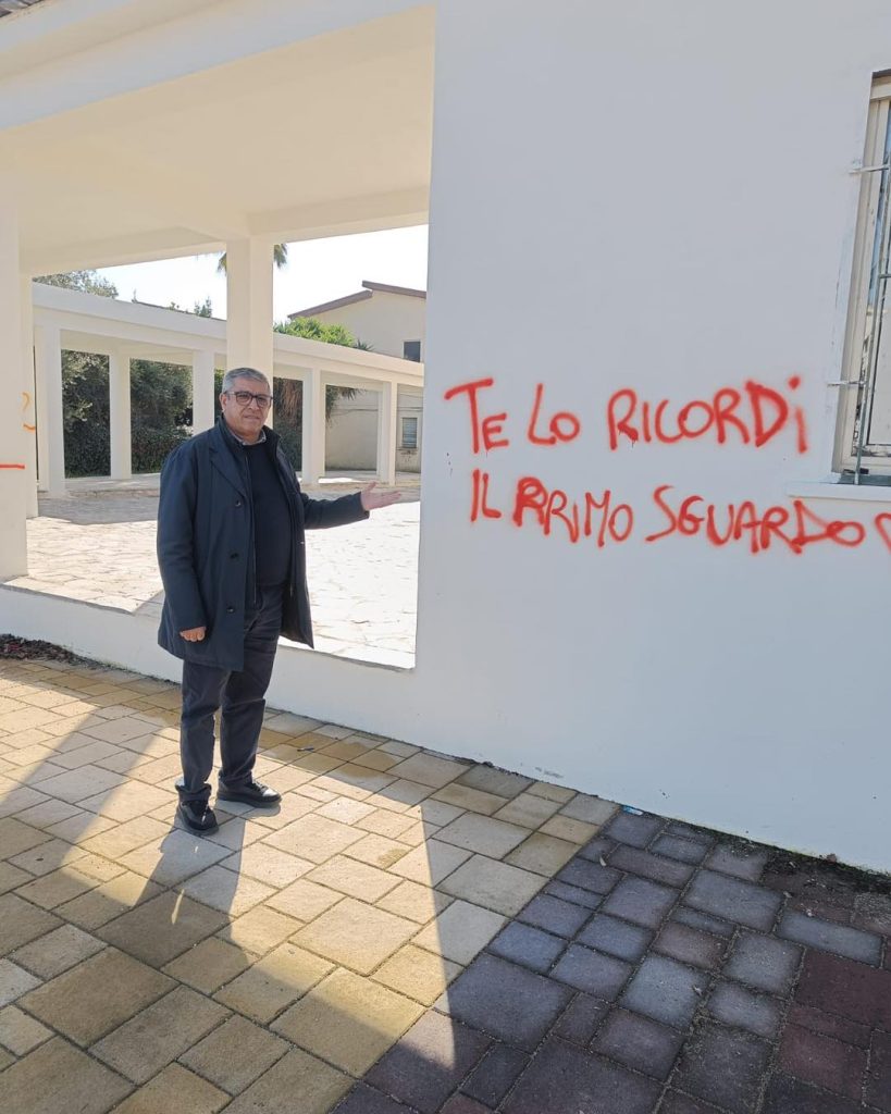 Il primo cittadino: "Questi vandali imbecilli hanno imbrattato un meraviglioso lavoro finito da poco grazie ai fondi del Pnrr"...