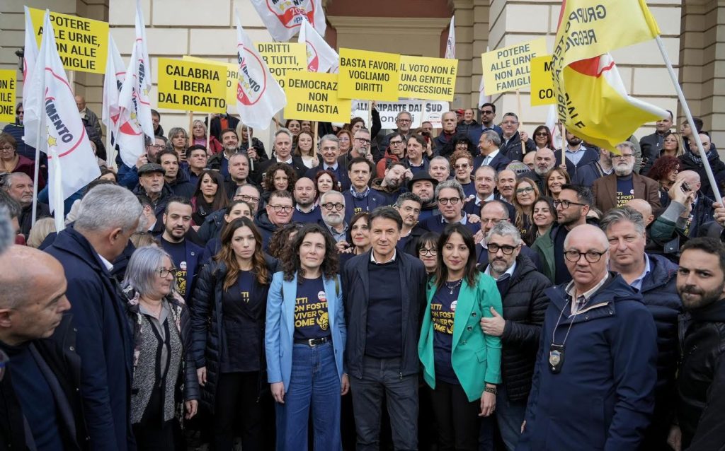 Conte denuncia ‘furto di democrazia’ alla manifestazione di Cosenza e annuncia candidato M5S per le regionali