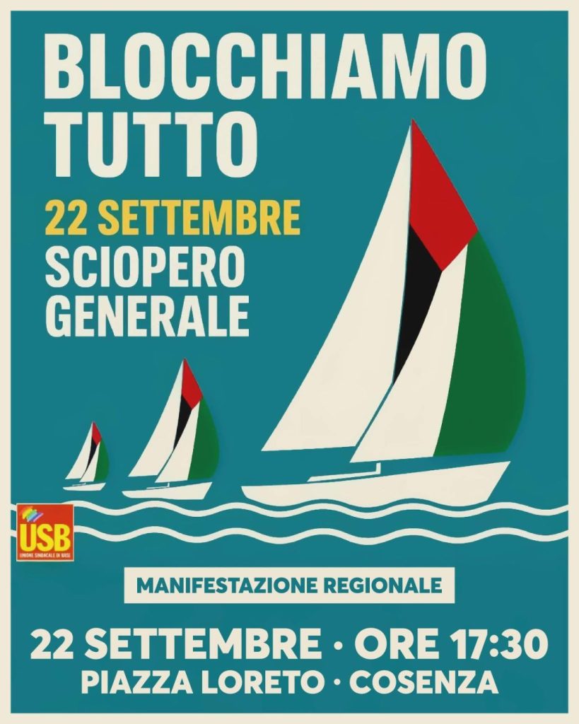 Sciopero Generale per Gaza: lunedì 22 settembre manifestazione regionale a Cosenza